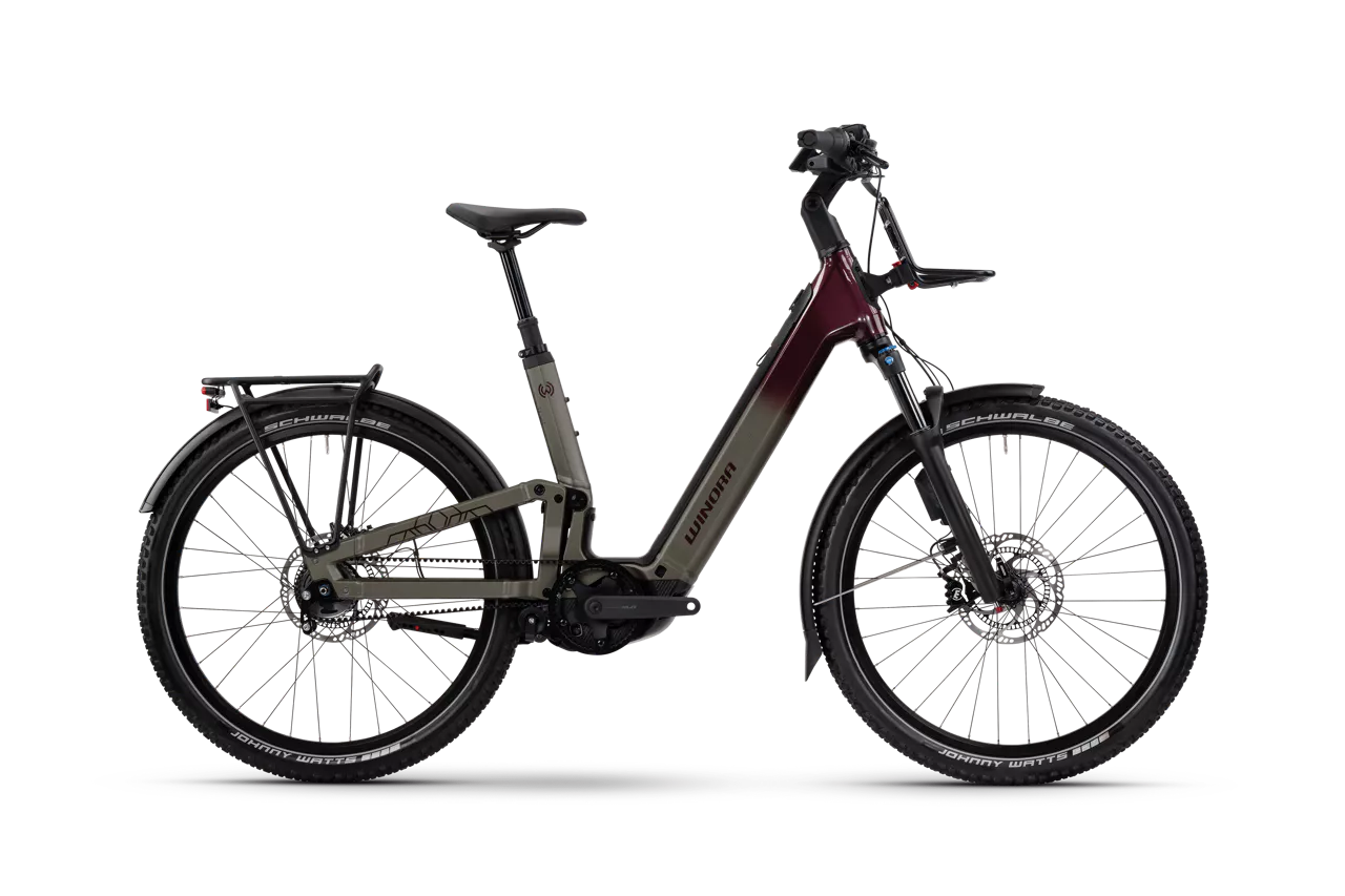 Komfort und Leichtigkeit auf jedem Meter. Dafür steht unser neues, vollgefedertes Winora Sinus FS R5f Pro. Ausgestattet mit dem Bosch Performance CX Motor der neuesten Generation mitsamt 800 Wh Batterie hast du mit diesem Komfort E-Bike jederzeit einen verlässlichen Partner an deiner Seite. Dazu trägt auch der langlebige Riemenantrieb bei – eine besonders wartungsarme Alternative zur Fahrradkette. Das gilt auch, wenn die Straßenverhältnisse holpriger sind: Das Fully-Setup mit Federgabel vorn und Rahmendämpfung hinten sowie die breiten Reifen verwandeln Kopfsteinpflasterpassagen und Schlaglochpisten in sanfte Rollerstrecken. Der tiefe Einstieg und die absenkbare Dropper-Sattelstütze erleichtern wiederum das Auf- und Absteigen an der Ampel. Praktisch: Mit der Klickfix-Halterung mit Frontgepäckträger sowie dem Gepäckträger hinten hast du auch für größere Einkäufe genügend Stauraum. Wir sind uns sicher: Mehr Alltagstauglichkeit, Komfort und Leichtigkeit geht nicht.